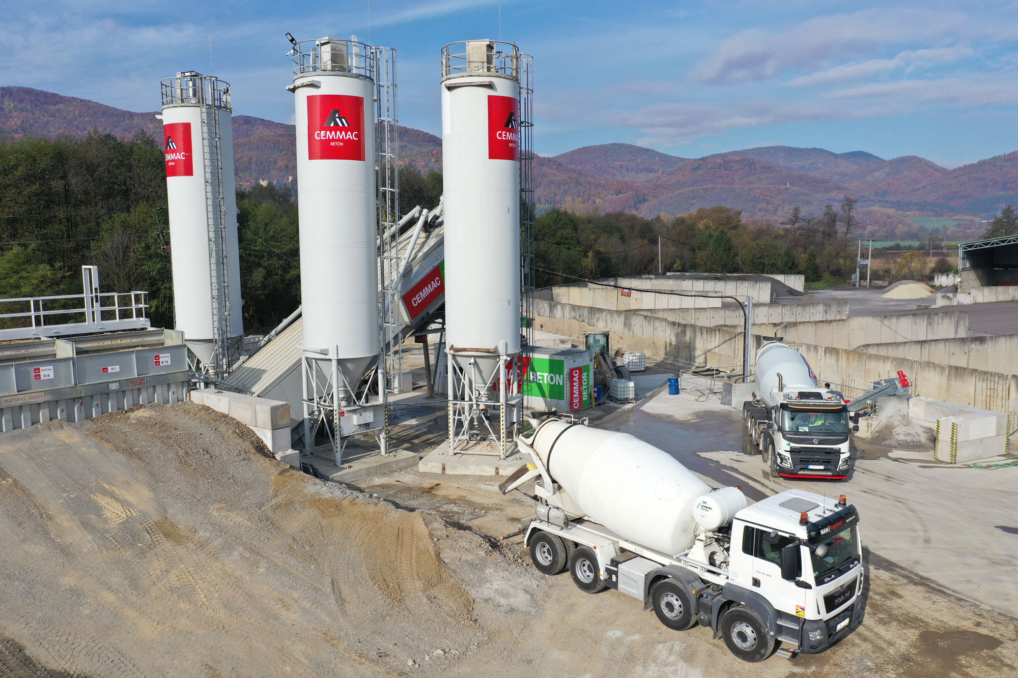 Betonáreň STETTER s objemom miešacieho jadra 2 m3 a hodinovým výkonom 90m3/hod.